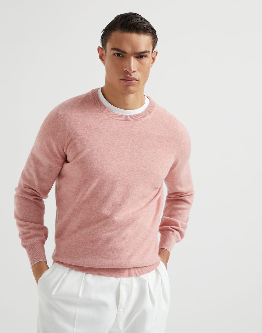 A timeless classic, this pure cashmere sweater represents an icon of the Brunello Cucinelli collections. The natural cashmere fiber’s superior quality enhances its comfortable fit, which is both lightweight and cozy. The contrast color edges of the cuffs and the inside of the crew-neck complete the style of this garment with refined details.
