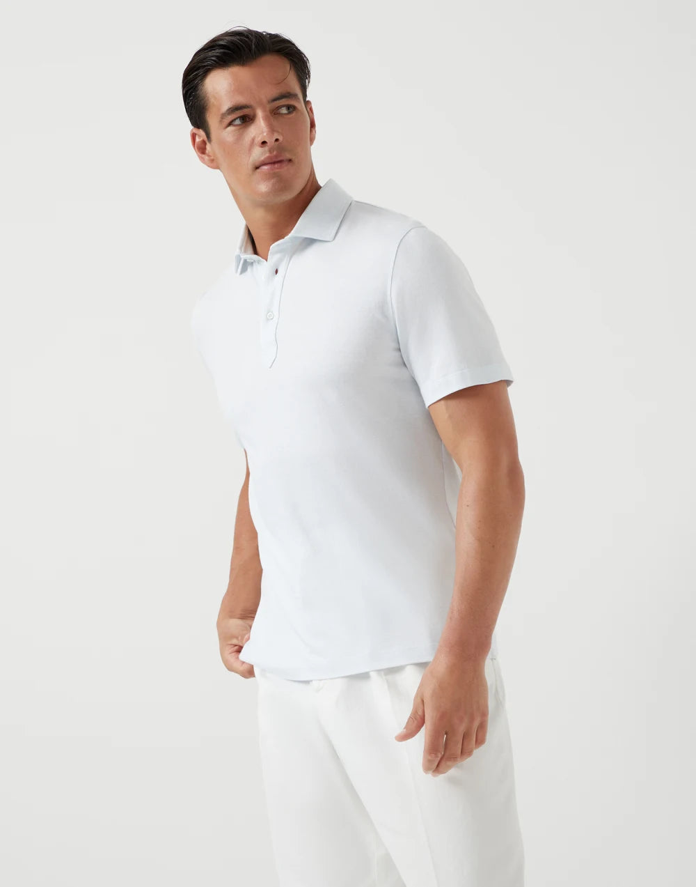 A mix of casual style and refined materials, this shirt-collar polo conveys the classic elegance of piqué in a contemporary way. The fabric is light and compact, thanks to the natural properties of cotton, enriched with the slight irregularity provided by the linen that enhances the honeycomb texture. The short-sleeve silhouette offers regular, comfortable proportions.
