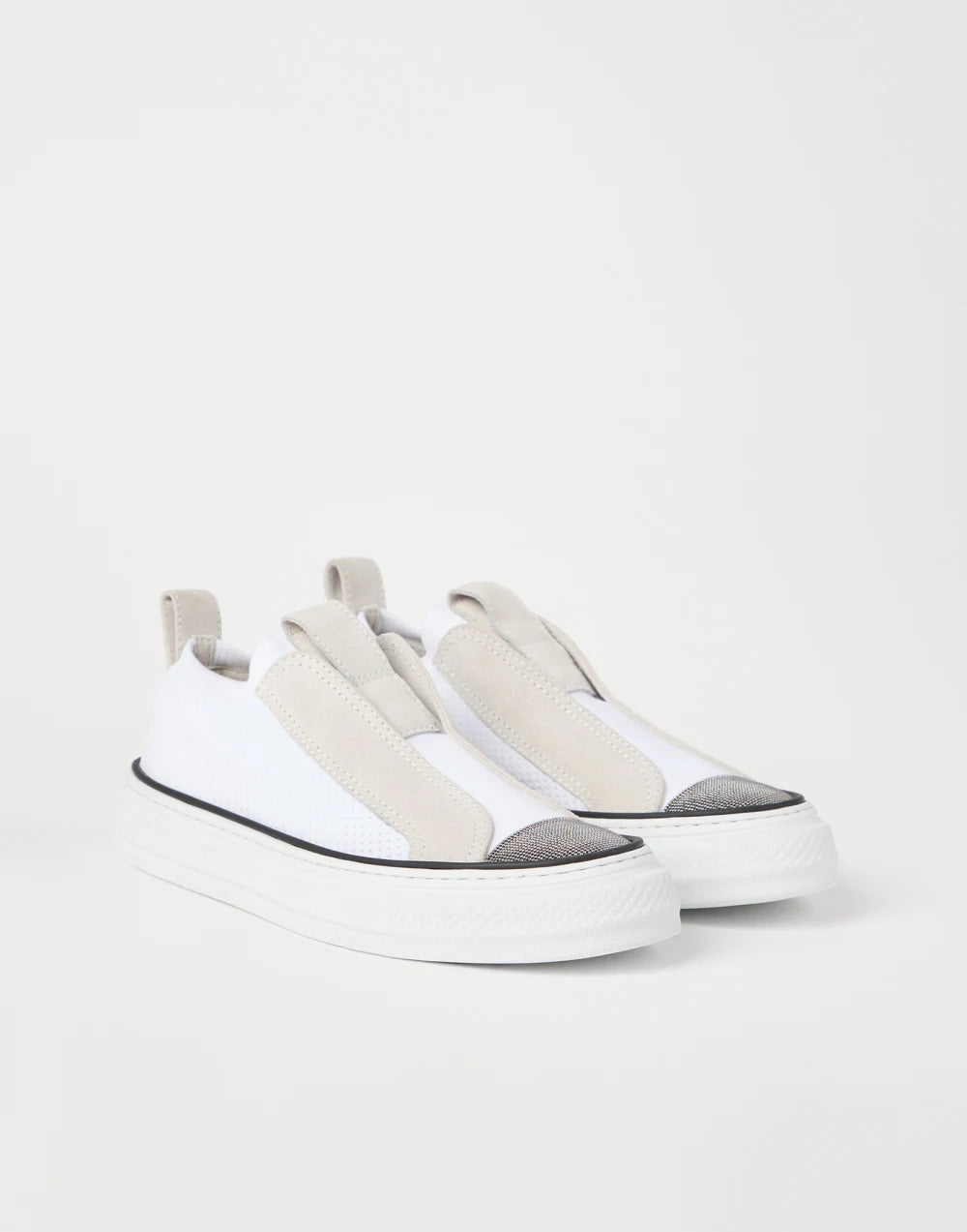 Knit and suede slip-on sneakers with precious toe