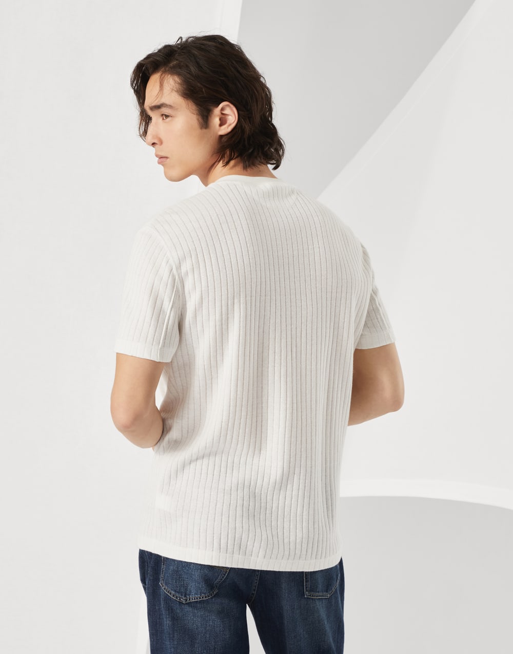 Ribbed linen and cotton jersey crew neck T-shirt with chest pocket