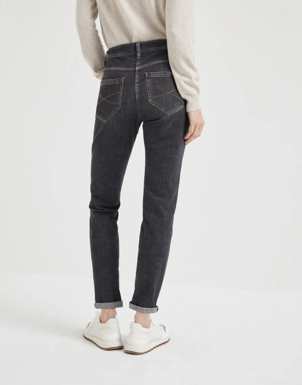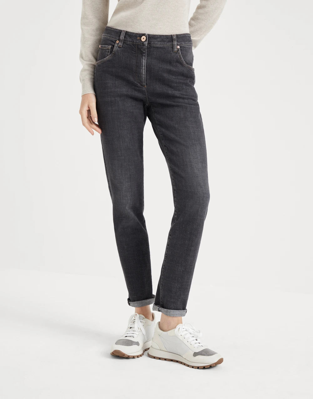 Stretch cotton denim is a lightweight and versatile fabric. A small percentage of spandex provides added comfort, particularly for styles that are fitted to the body.